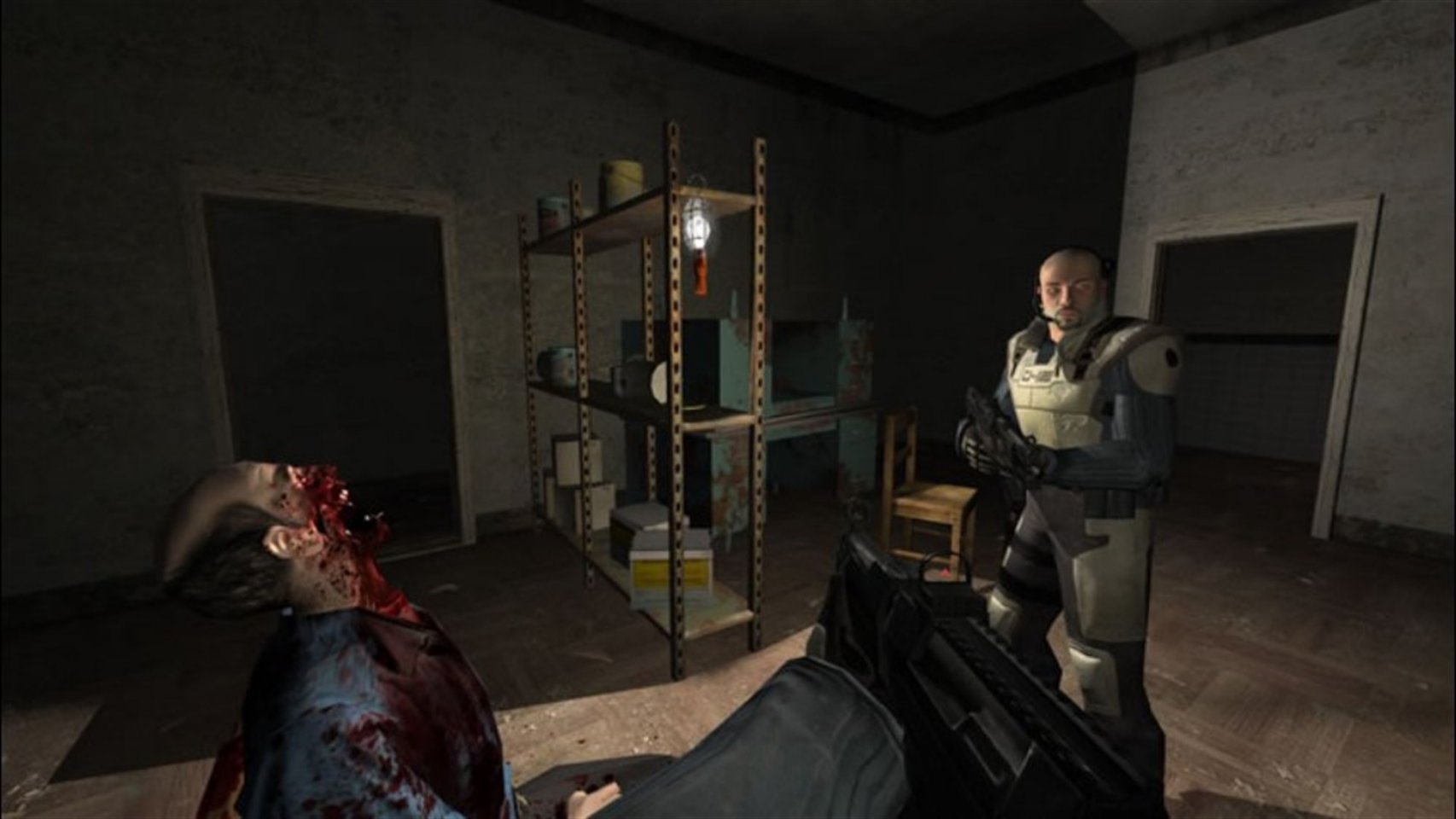Le jeu se déroule dans un futur proche, en l’année 2025, dans la ville fictive de Fairport aux Etats Unis. Le joueur incarne un soldat d’élite répondant au pseudonyme de « Point Man » et appartenant au First Encounter Assault Recon (F.E.A.R.), une unité spéciale dirigée par un certain Rowdy Betters. Il fait équipe avec deux autres membres de l’unité : Jin Sun-Kwon et Spencer Jankowski. L’histoire débute lorsque Paxton Fettel, un homme appartenant à un programme de recherche nommé Origin et développé par l’entreprise Armacham Technology Corporation (ATC), prend le contrôle par télépathie d’une armée de soldats clonés surentraînés et lourdement armés : les « Réplicas ». Le F.E.A.R. est donc rapidement sollicité pour régler au plus vite et discrètement le problème.