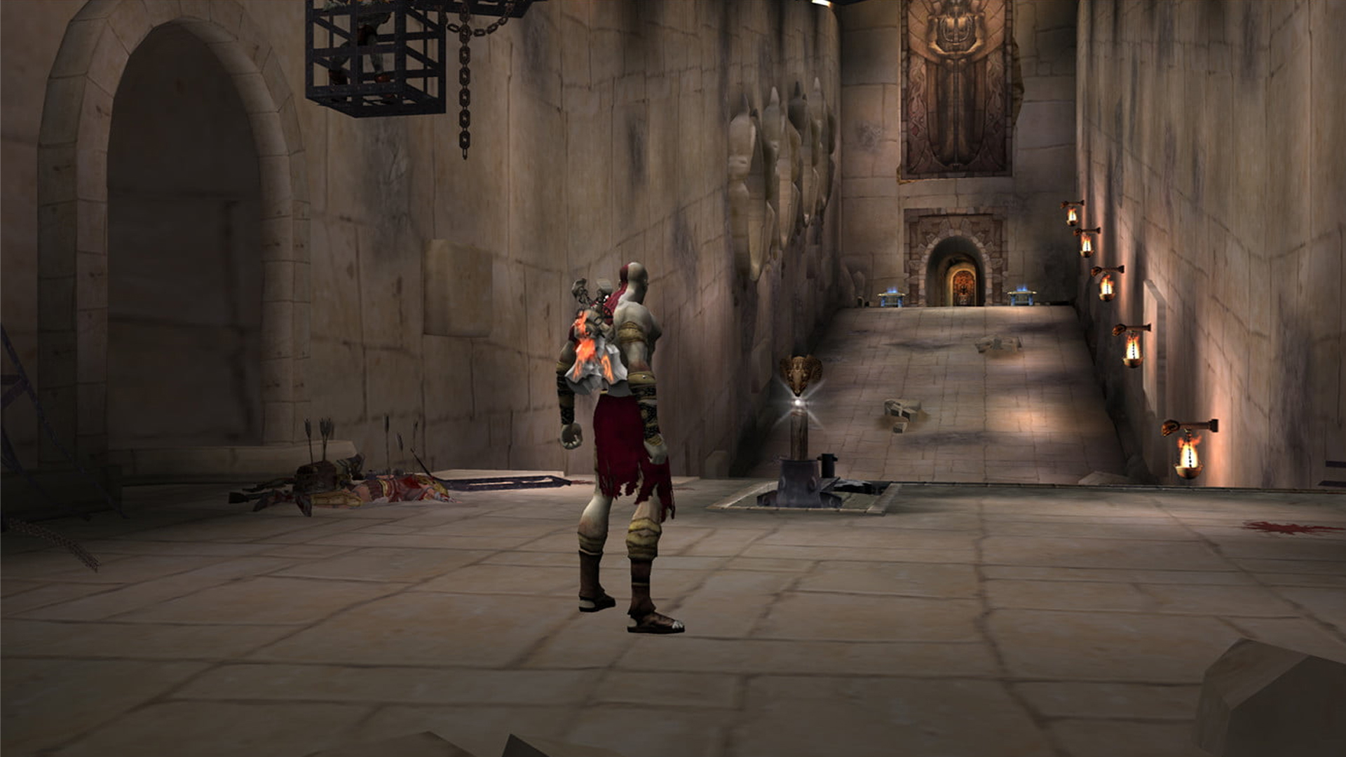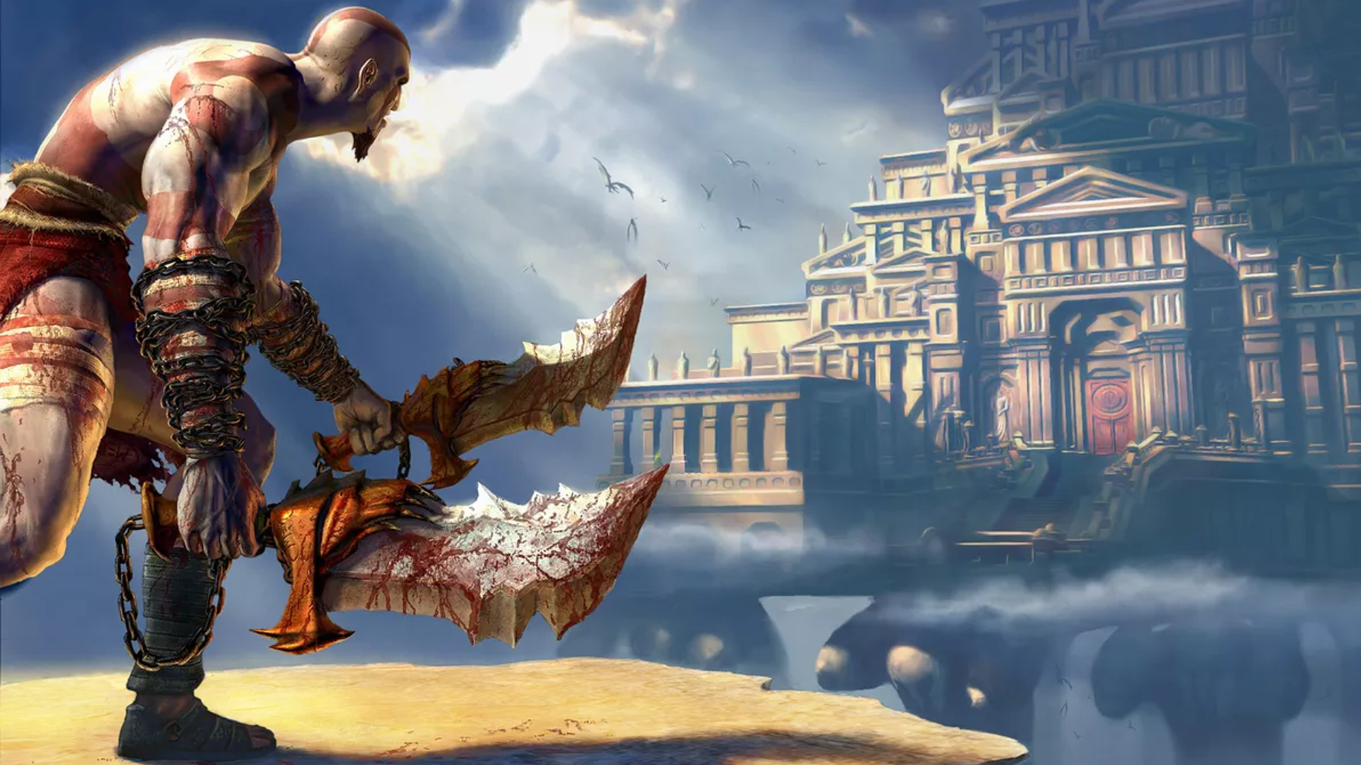 Alors qu'il enchaîne les campagnes victorieuses, Kratos doit affronter une armée de barbares venus de l'Est. La bataille est sanglante et son armée de Sparte est balayée. Alors que le chef barbare est sur le point de mettre fin à la vie de Kratos, ce dernier implore Arès, le dieu de la Guerre et de la Destruction, de le sauver.Arès entend l'appel de Kratos et utilise sa puissance pour retourner le cours de la bataille, et fait de lui son serviteur. Arès fournit à son nouveau serviteur les Lames du Chaos, forgées dans les flammes des Enfers.Sous la coupe d'Arès, Kratos reprend ses campagnes militaires, plus cruel et sanguinaire qu'auparavant. Son humanité est peu à peu effacée par le dieu, remplacée par une soif de destruction et de conquête inextinguible.Puis vient la nuit où la vie de Kratos bascule à nouveau. Arès lui assigne une mission : mettre à feu et à sang un village où se situe un temple dédié à la déesse Athéna . Kratos tue toutes les personnes présentes dans le temple. Or dans ce temple se trouvaient sa femme et sa fille, qu'il tue dans sa folie meurtrière. Ce massacre a été planifié par Arès afin que le Spartiate brise lui-même ses dernières attaches en tant qu'humain et lui soit dévoué tout entier. Réalisant l'atrocité de ce que son maître lui a fait faire, Kratos jure de tuer Arès.En quête de rédemption, Kratos offre ses services aux dieux de l'Olympe, espérant le pardon pour ses actes.